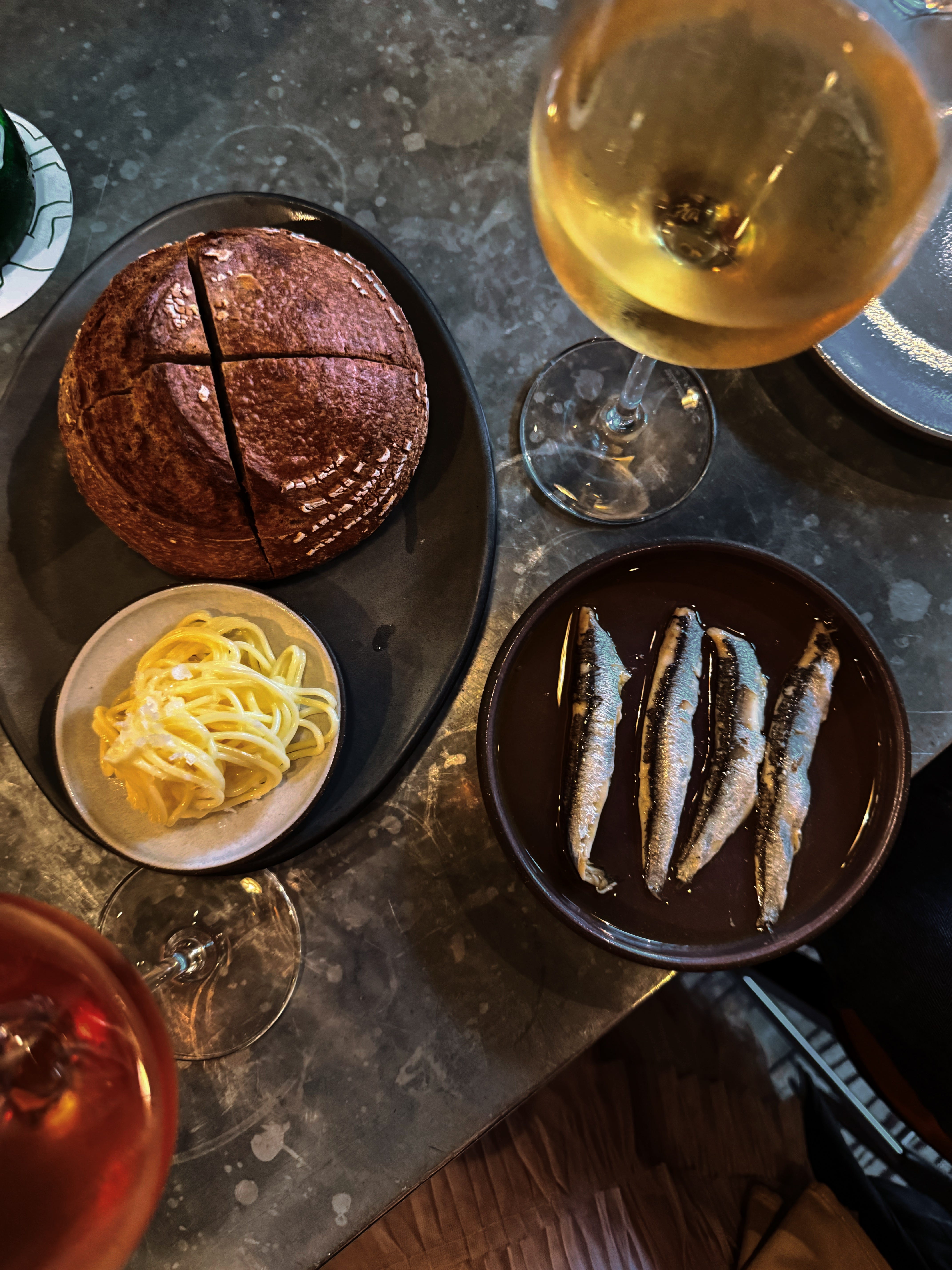 We ordered some bread with boquerones, a plate of mushroom pasta, and a big steak with potato foam (as one does). And for dessert, we walked over to Henry Public for cold gin martinis. It was another glorious night.