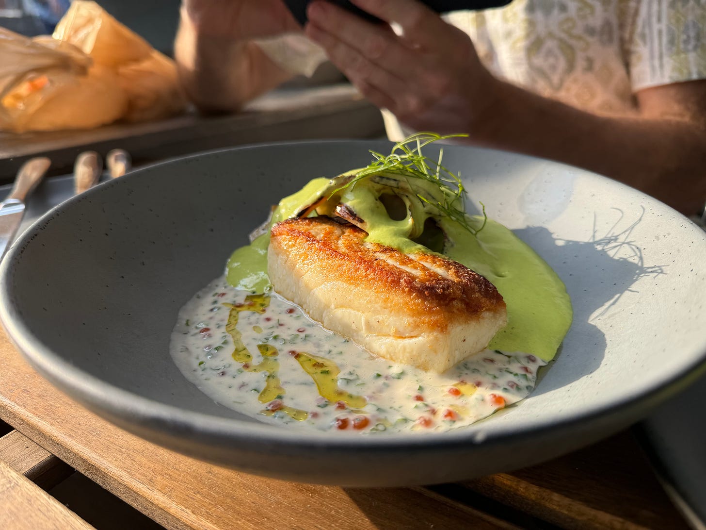 There was no waitsplaining, like at a recent tasting menu where each course required 60 seconds of contextual monologuing. There was no upselling. There were no folks constantly changing silverware or saying “sorry to interrupt.” And the cocktails all cost less than twenty bucks each.