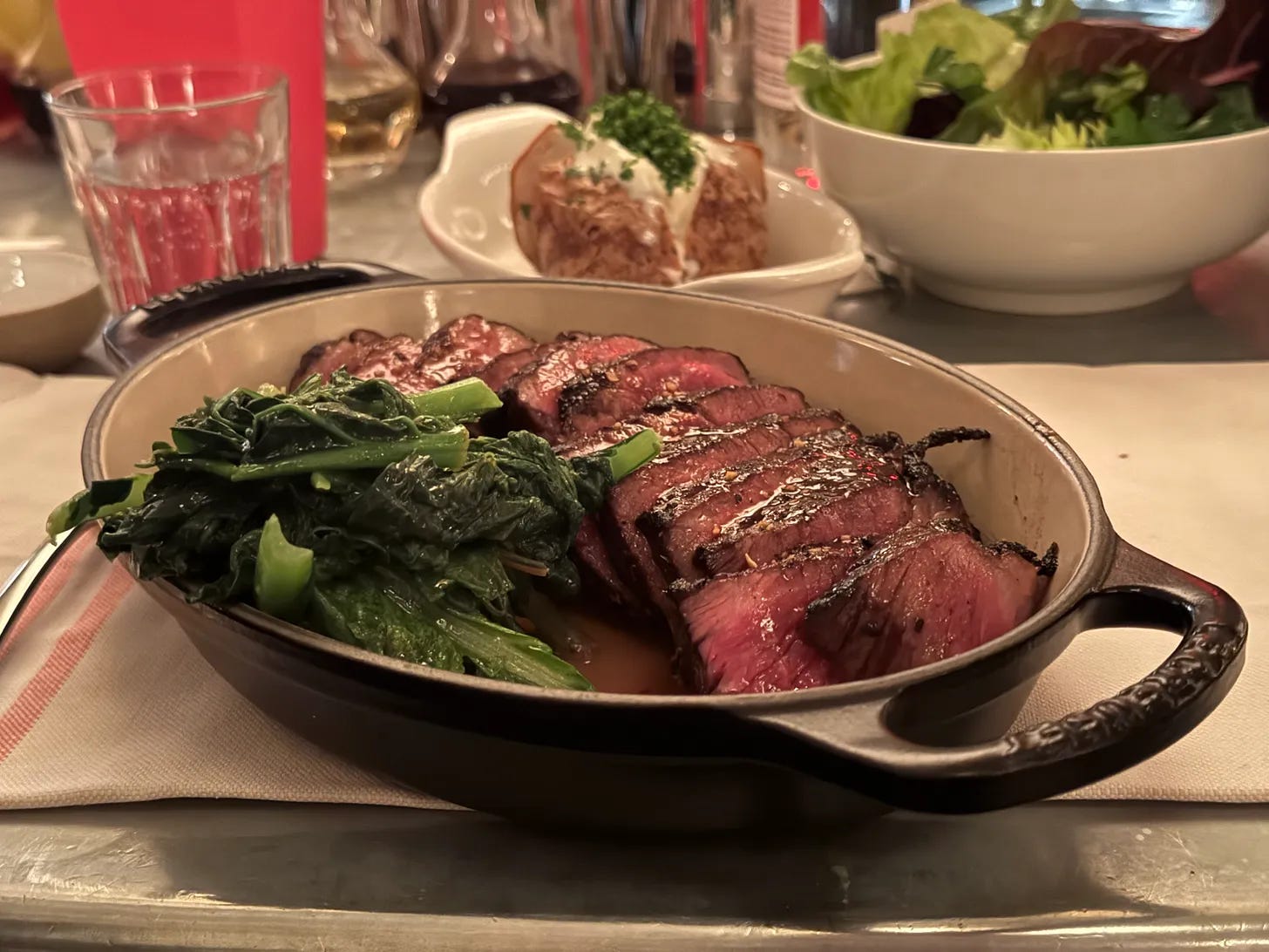 The Mexican operator I was chatting with earlier still hasn’t tweaked his steak prices. A recent Axios report suggested that restaurants are hiking their prices more slowly than grocery stores, “making steakhouse meals look like a better value than they used to.” Perhaps that’s true nationwide, at chain spots; Axios was speaking to Darden’s chief executive, who runs the LongHorn brand (which I’ve never visited).